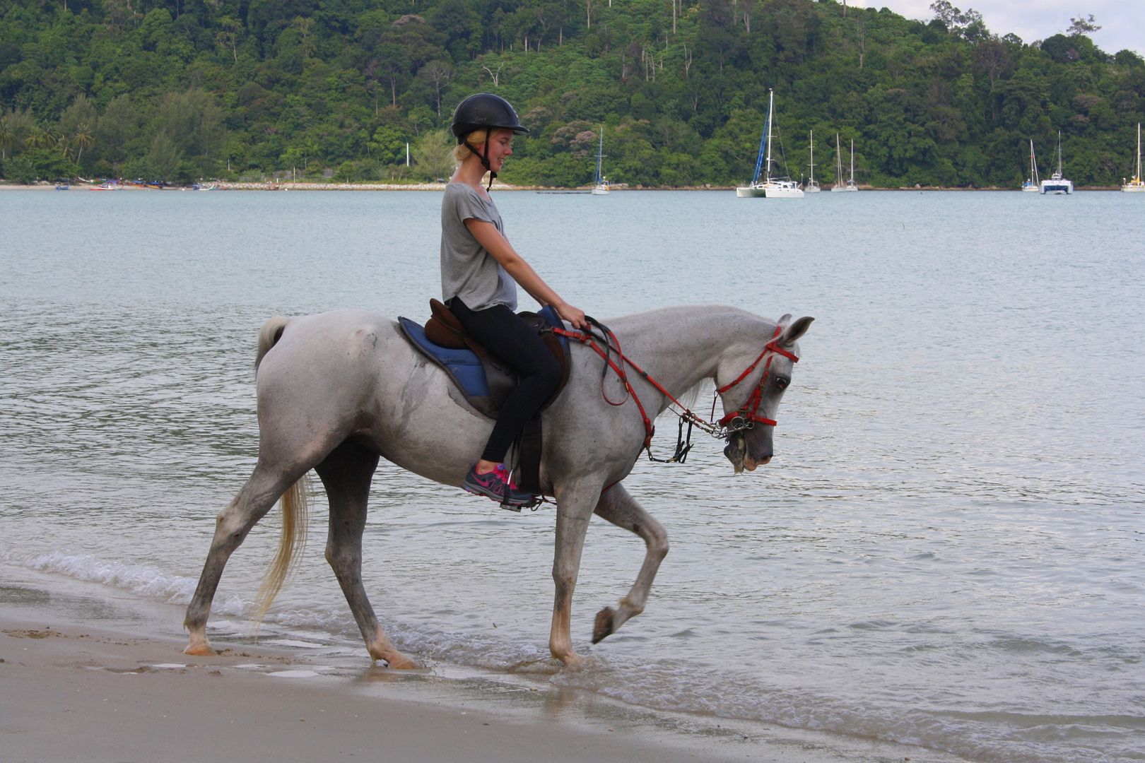 De eigenaar van de stal bleek Nederlands te zijn, wat een leuke verassing! Hij vroeg naar mijn ervaring, welke ik natuurlijk zeker heb (ik ben van mijn 5e tot mijn 18e bijna elke dag paardgereden). Maar ik moet ook toegeven dat ik al een behoorlijke tijd niet heb gereden en best huiverig ben voor onbekende paarden. Ik heb namelijk ooit twee maal mijn arm gebroken door een val van een paard. De eigenaar stelde mij gerust en gaf mij een prachtige witte arabische merrie mee. Ik kreeg een gids mee en samen gingen we ruim een uur op pad. Eerst een stuk door de jungle om vervolgens bij het strand uit te komen, waar we heerlijk gegaloppeerd hebben. Wat was het weer fantastisch en wat ben ik misschien weer verliefd geworden op de sport die ik zo lang met veel plezier heb mogen uitvoeren.